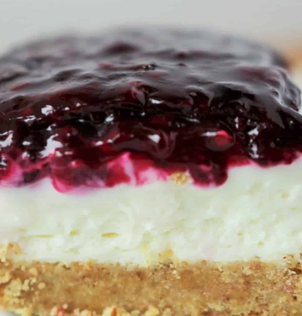 Recipe Update: I have made this delicious recipe for blackberry cheesecake bars several times now. I needed a yummy potluck dessert recently. I pulled a bag of frozen blackberries out of the freezer and whipped up a batch. This easy blackberry cheesecake recipe also has instructions for using frozen berries. Everybody loves this refreshing dessert!